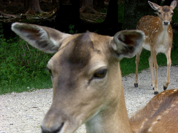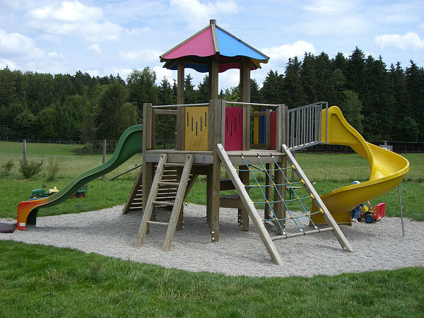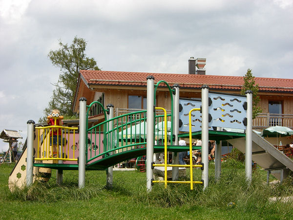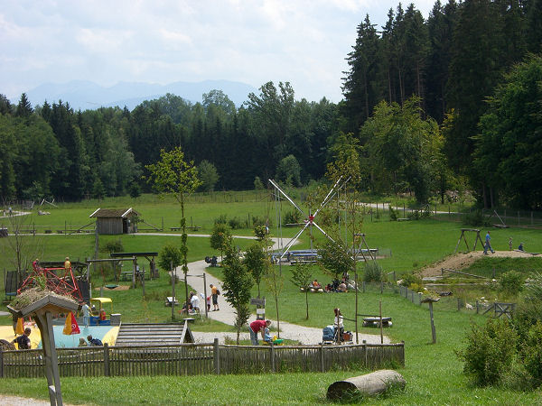 Der Bergtierpark kostet nur moderaten Eintritt. Am Tor kann man sich einen Bollerwagen leihen. Das großzügige Gelände beherbergt ein paar heimische Wild- und Nutztierarten, die man mit Graspellets füttern und auch streicheln darf. Kein Tier wird beengt gehalten, keines hat wie wild geboxt oder gebettelt. Ein Rundgang führt an den Tiergehegen vorbei durch den Wald, ungefähr auf halber Strecke befindet sich ein Grillplatz, auf dem man selbst zur Tat schreiten kann und muss. Ein riesiges Gelände ist vollgestellt mit allen möglichen Spielgeräten, eine enorme Schaukel, Rutschen und Klettergerüste, Trampolins, Schaukeln, Sandkästen… sehr gut gefallen hat uns, dass für Schattenplätze gesorgt ist und überall kleine Trecker und Bobbycars stehen. Im Sandkasten liegt Spielzeug bereit. Das Hüpfen auf dem Bungee-Trampolin ist äußerst günstig. Die Geräte sind neuwertig und in sehr gutem Zustand, das Gelände ist sauber und gepflegt. Das Restaurant bietet Fast Food, Kuchen, Eis und Getränke zu annehmbaren Preisen.