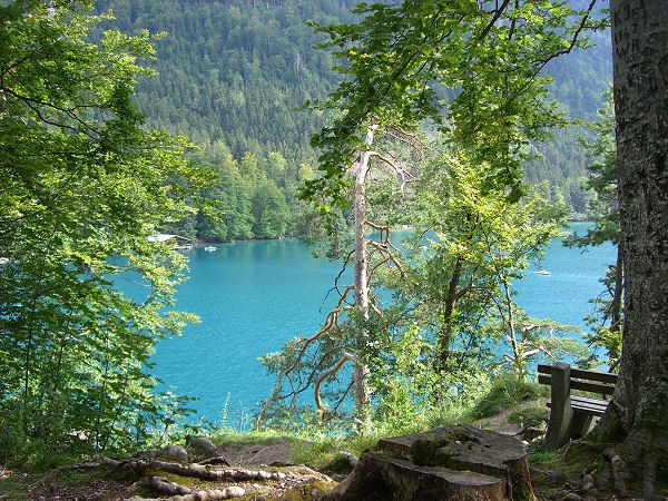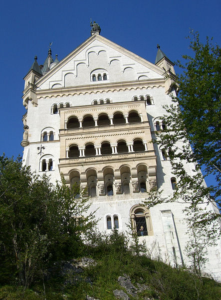 Schloss Neuschwanstein liegt einen 30-Minuten-Fußmarsch von Hohenschwangau entfernt. Vor dem Erklimmen muss eine Eintrittskarte gekauft werden, damit man das Schloss auch besichtigen kann! Wer früh da ist, kann auch eine Doppelkarte kaufen und dann noch Schloss Hohenschwangau besichtigen. Die Führungen lohnen sich, man sieht viel Prunk und Kitsch und Kuriositäten im Inneren des unfertig gebliebenen Schlosses. Man kann den Weg auch mit Pferdekutsche oder Bus bewältigen.